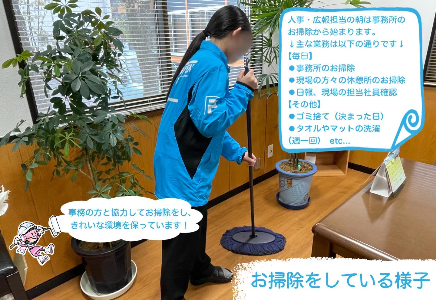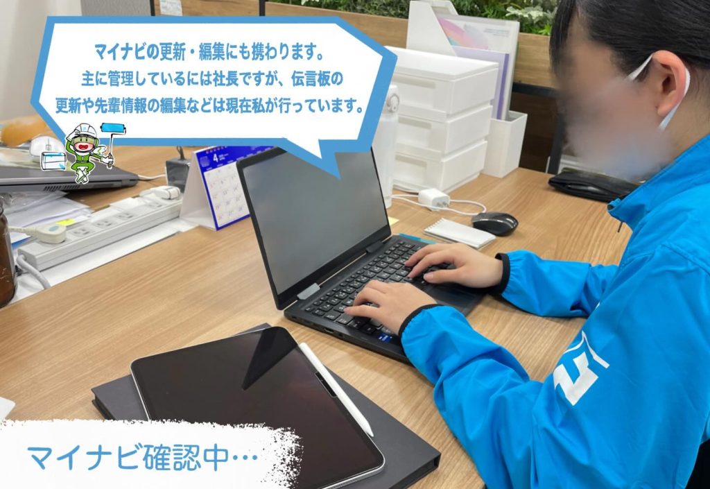 画像では紹介しきれませんが、これらのお仕事のほかにも、マイナビや県内の説明会イベントがある際は、社長と一緒に参加したり事務業務を行ったりしております!